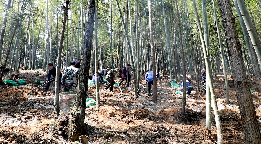 眼下,何家洞镇各楠竹基地一派繁忙景象。在朝阳庵村300多亩的林笋基地里,10多名村民正忙着挥锄平整土地,在林业技术人员指导下,为2.5亩玉龙菇试种做好前期准备。这片楠竹基地往年以竹笋种植、林下养鸡为主,今年新增玉龙菇、挂袋木耳等林下经济新项目,成为村民增收的“致富伙伴”。朝阳庵村党支部书记奉燕君介绍,村里从3月7日开始整地,计划3月15日左右开始种植,预计5月份进入采收期。