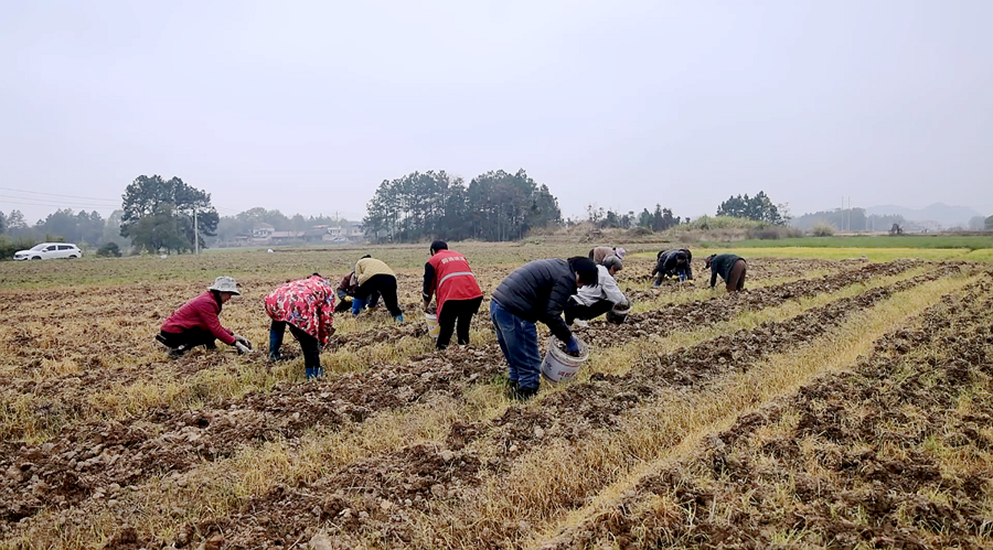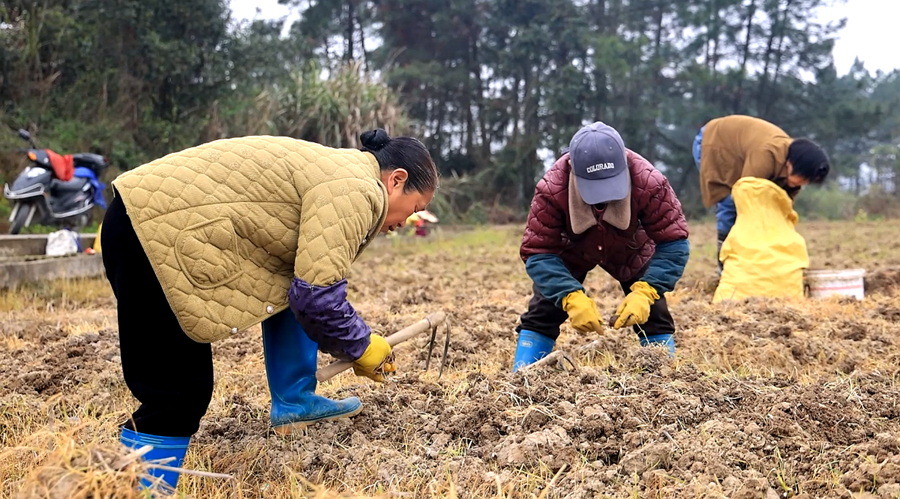 香芋产业的发展,不仅为种植户带来了可观的经济收益,也有效带动了当地村民就近就业。从整地、育苗到移栽、管护,基地每天需要大量劳动力,让村民在家门口就能务工增收。务农人员蒋腊玉说,自己年纪大了,外出进厂务工已不再合适,在基地干活不仅能照顾家里,每天还能有百来元的收入。