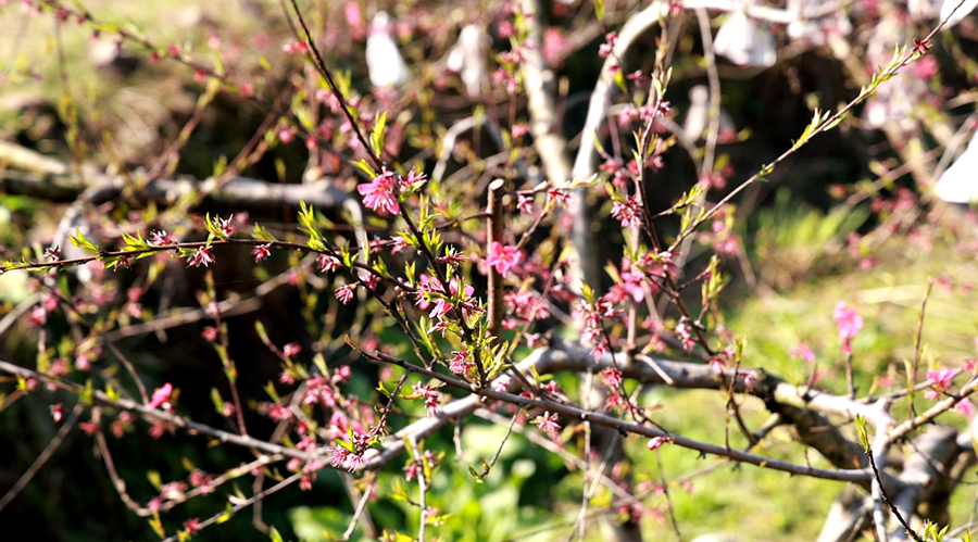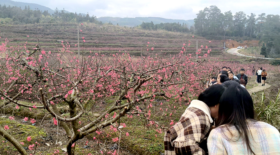 本网讯(双牌融媒记者 盘春红)惊蛰时分,气温回暖,春意渐浓。眼下,双牌县上梧江瑶族乡盘家村的鹰嘴桃基地内,桃花竞相绽放,漫山粉红吸引不少游人前来踏春赏花。灼灼桃花不仅扮靓了乡村,更成为带动乡村增收的致富之花。