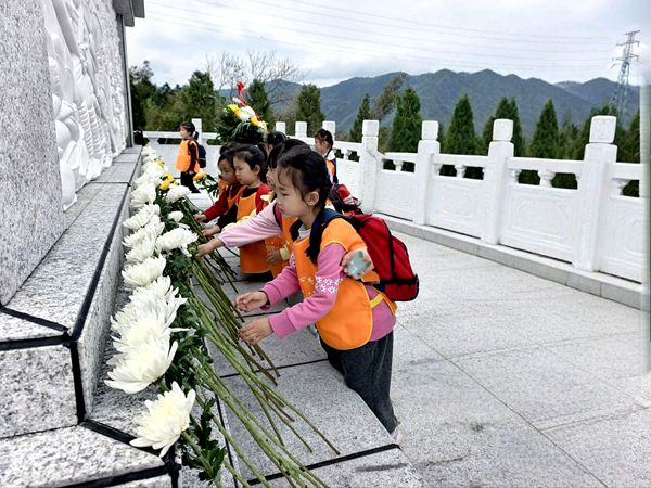 上午9时,师生身着统一服装,乘坐校车有序抵达烈士墓。在庄严肃穆的烈士纪念碑前,全体师生整齐列队、肃立默哀,深切缅怀革命先烈的丰功伟绩;教师代表与幼儿依次向烈士敬献鲜花、鞠躬致敬,用朴素的方式表达崇敬与感恩。随后,孩子们在教师引导下参观烈士事迹陈列区,聆听讲解,直观感受革命先辈的奋斗历程。返程途中,孩子们纷纷分享活动感受,用简单质朴的语言表达对英雄的敬佩。