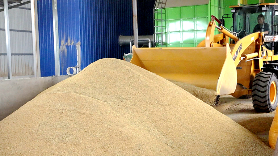 今年,李小兵自筹50万元在村里建起现代化烘干机中心。走进烘干机中心,多台智能烘干设备正满负荷运转,脱粒后的湿稻谷通过传送带进入烘干仓,几小时后便达到储存标准,760多亩晚稻烘干比往年提前约7天。该中心单日烘干能力达60余吨,既能满足自家需求,还能为周边农户提供有偿烘干服务。