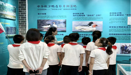 双牌县日月湖国家湿地公园管理中心高度重视鸟类保护工作,设立中华秋沙鸭监测保护站,配备3台观鸟望远镜,始终扛牢鸟类保护重任。当前正值鸟类迁徙的关键期,管理中心以湿地宣教馆为阵地,欢迎全市各中小学、幼儿园前来学习鸟类保护小常识,主动投身鸟类保护行动。