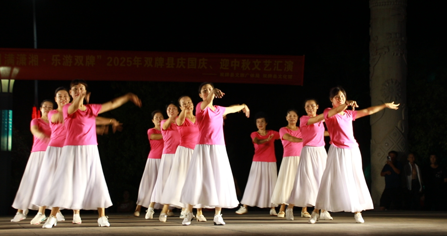 此次汇演是双牌县庆国庆、迎中秋系列活动的重要一环。10月1日—5日,滨江广场还将开展非遗展、网红打卡墙活动;10月4日推出“夜赏·双牌”沉浸式夜游体验,为群众带来多元文化盛宴。