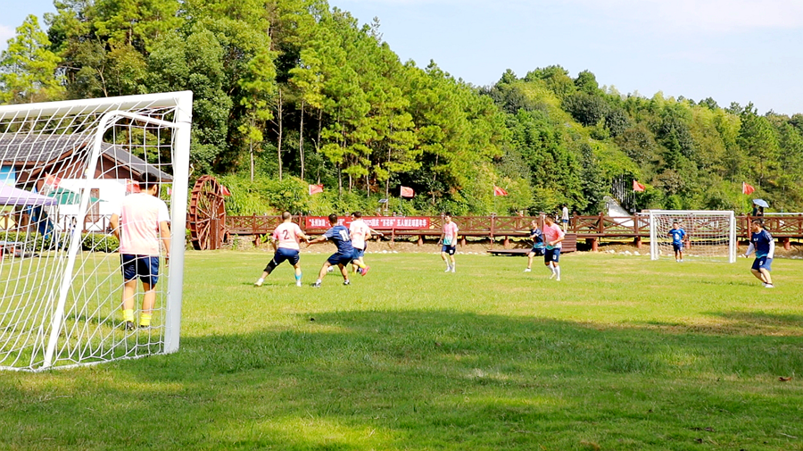 上午九点,花千谷·月湖景区的欢乐大草坪化身“野生球场”。双牌公安、法院、二中、职中以及足协组建的5支队伍,分别代表阳明山、桐子坳、云台山、花千谷·月湖、青龙岩五大景区进行比赛。现场,球员们攻防转换流畅、默契配合紧密,激烈对抗点燃全场热情,场边观众呐喊助威声此起彼伏,将氛围推向高潮。