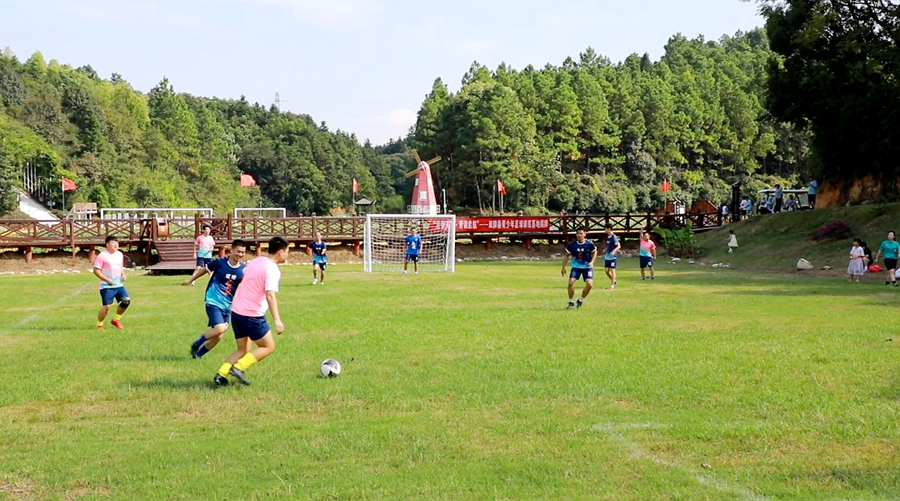 江西南昌游客吴亮亮说:“我从江西南昌过来,之前‘湘超’永州主场的‘挂票’火出圈,一直想去现场看看,可惜没抢到票。这次国庆长假,第一天先去了永州体育馆‘挂票’现场打卡,听说双牌这边的景区有趣味足球活动,一大早就赶过来了。现场氛围非常好,景色美,足球也好玩,我还亲自体验了‘野生球场’,特别开心。”