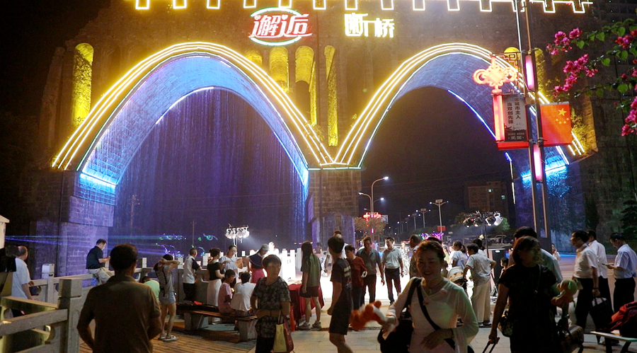 本网讯 (双牌融媒记者 李林云 通讯员 黄群浩)10月4日晚,潇水河畔断桥沿岸灯火璀璨、氛围热烈——由双牌县文化馆主办的“夜赏·双牌”沉浸式夜游体验活动在此浪漫启幕。一场集汉服雅韵、才艺展示、音乐盛宴于一体的夜晚文化盛宴,吸引了众多居民和游客参与,共赴充满古风雅韵与现代趣味的国庆之夜。