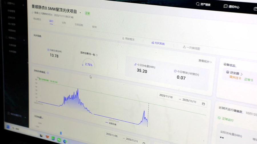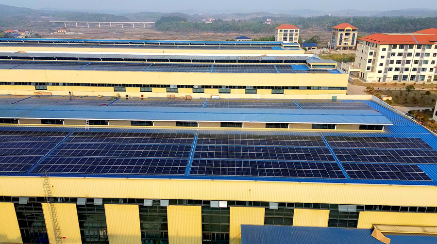 “政府投资的厂房屋顶已全部进行分布式光伏及充电桩建设,装机容量约7.1兆瓦,完成光伏板安装35591平方米,基本覆盖整个园区。” 产业开发区党工委书记蒋宁介绍,该项目每年可为电网提供清洁电能633.68万千瓦时,目前园区超半数企业已用上绿电。位于双牌产业开发区内的湖南省景顺肠衣食品有限公司便是受益者,企业年产值2000余万元,年用电量120万度,自2022年落户园区以来,年消纳光伏电量60万度左右,每年节约电费15万至18万元。
