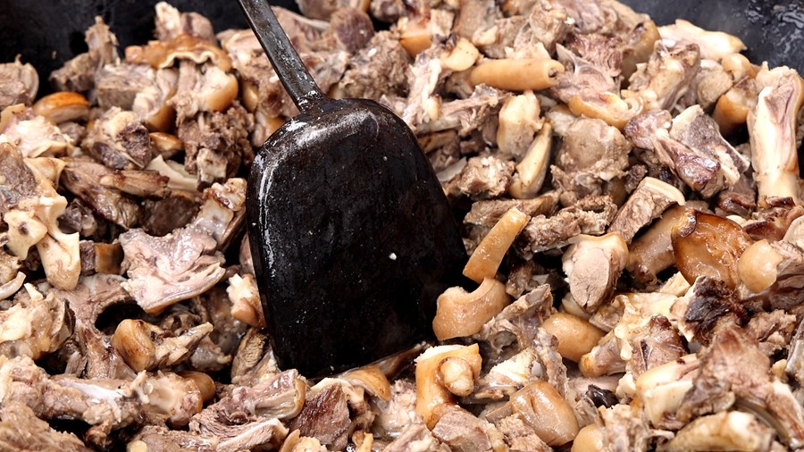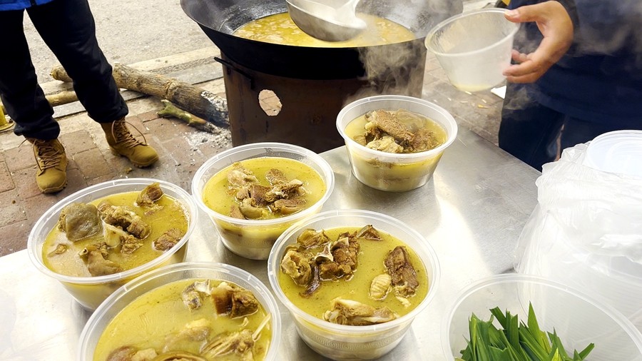 “我们提前一周备货,每天早上五点就开始煮,坚持现杀现煮,保持肉的新鲜度。平时每天卖五六头羊,今天冬至预计能卖八九头。”商户唐贵介绍,为了方便市民,商户街边现场烹煮,食客买上一碗,捧着滚烫的碗沿喝口热汤,暖意瞬间从舌尖蔓延全身。